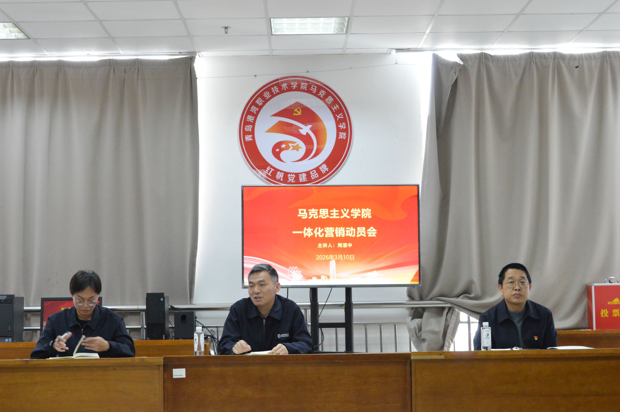 会议第三阶段召开一体化营销动员会,共同学习《职教集团一体化营销手册》。彭翠介绍学院各类资质、协会资源、校友资源及外部合作客户情况,肯定2025 年一体化营销工作成效,提出未来要在技术服务上实现新突破,把专业优势转化为发展资源。周灌中副院长强调,一体化营销是学院提升社会服务能力、发挥社会职能的重要抓手,要动员更多教师主动参与、走近企业、贴近一线。会议明确三项工作要求:一是熟悉手册、掌握资质、统筹资源,用好现有资源;二是人人有责、全员发动、全力攻关,形成工作合力;三是创新机制、奖惩分明、选树典型,激发干事创业活力。