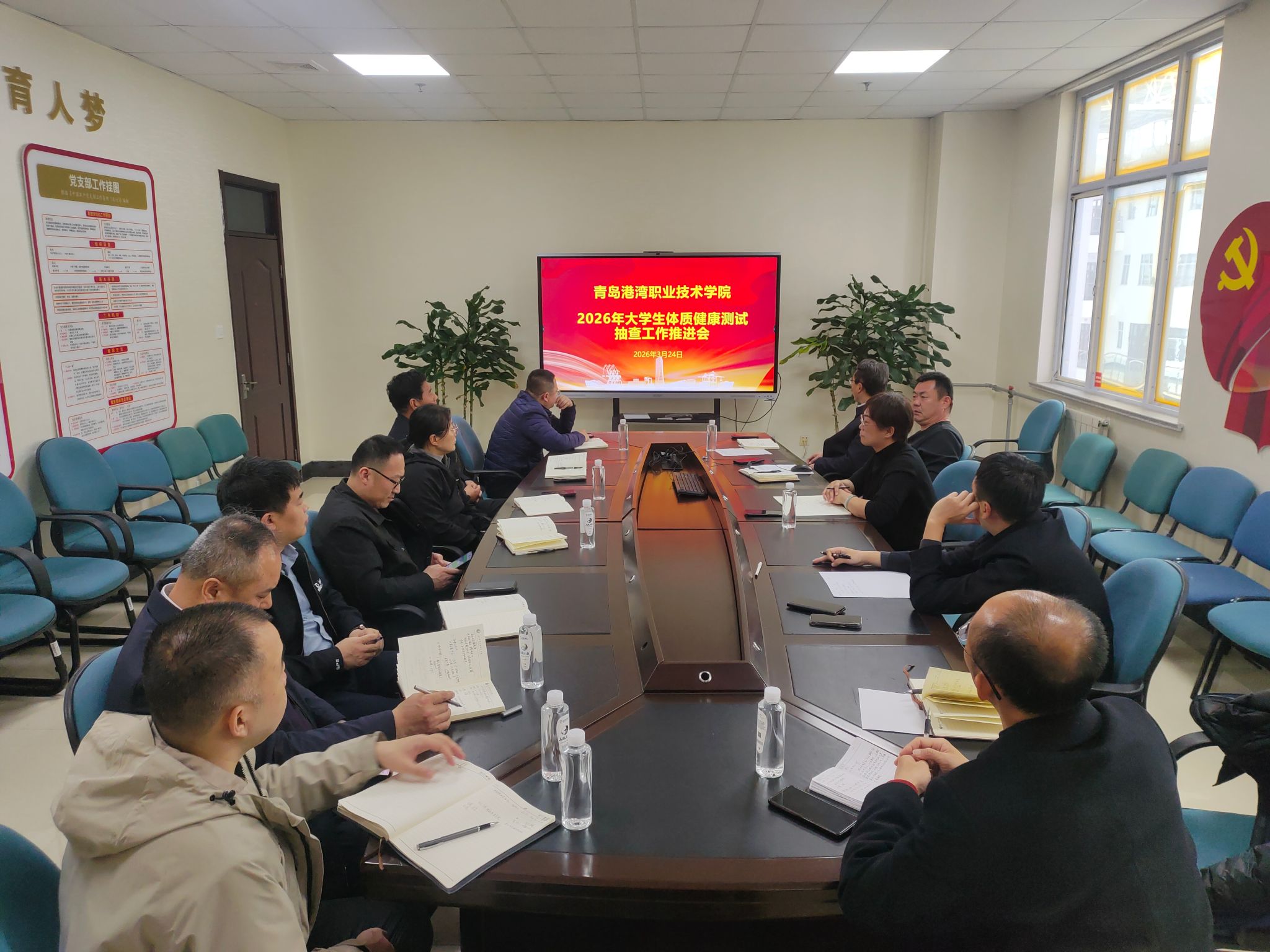 为落实山东省教育厅2025年普通高校学生体质健康测试数据抽查复核工作要求,确保学院体测抽查工作平稳有序、高效推进,近日,公共教学部召开2026年大学生体质健康测试抽查工作推进会。会议由体育教研室主任寇师印主持,公共教学部主任、各二级学院副书记及相关部室负责教师参加会议。