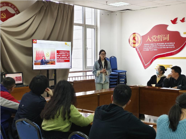 本次党课由青年党员毕恩梅同志担任主讲人,主题为“以青春之力托举中国式现代化”。毕恩梅同志围绕党的二十大精神,结合中国式现代化的科学内涵及其对新时代青年人的要求,从“人口规模巨大、全体人民共同富裕、物质文明和精神文明相协调、人与自然和谐相处、走和平发展道路”五个方面讲解了中国式现代化内涵,提出青年人要在中国式现代化道路上贡献出自己的力量,要努力成为现代化建设的实践主体、创新主体、奋斗主体,在座的党员同志们要强志气、争骨气、筑底气,发扬奋斗精神和斗争精神,以青春之力谱写盛世华章。