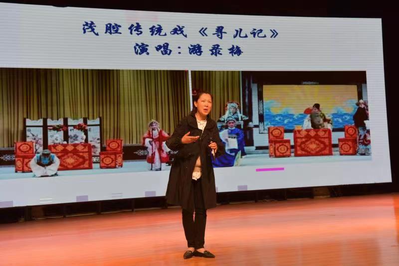 仪式后,黄岛区茂腔传承艺术中心张艺杰、游录梅两位老师现场表演了茂腔经典曲目唱段,学院汉文化协会、曲艺协会同学同台表演了汉舞和传统曲艺节目,精彩的表演让师生领略了戏曲艺术与传统文化的巨大魅力。
