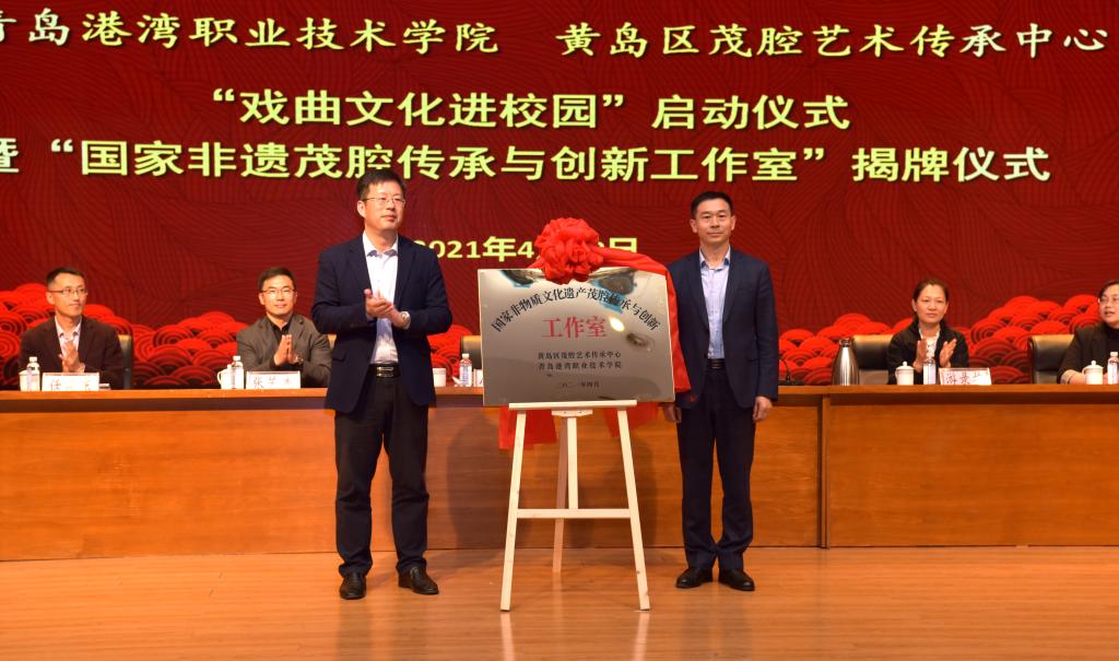 厉建省与王海蛟分别代表双方在共建国家非物质文化遗产茂腔传承与创新工作室、思政与传统文化研学基地协议上签约,并共同为国家非物质文化遗产传承与创新工作室揭牌。彭翠宣布“戏曲文化进校园”活动正式启动。