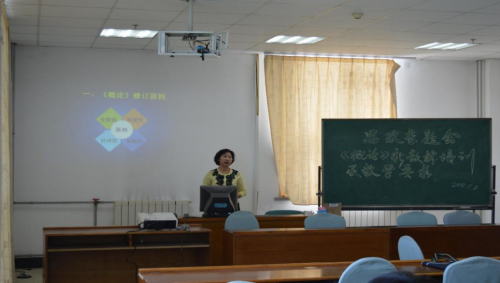 5月9日下午,思政部张均瑶主任在A501会议室对思政教师开展“《毛泽东思想和中国特色社会主义理论体系概论》新教材修订情况及教学要求”专题培训。