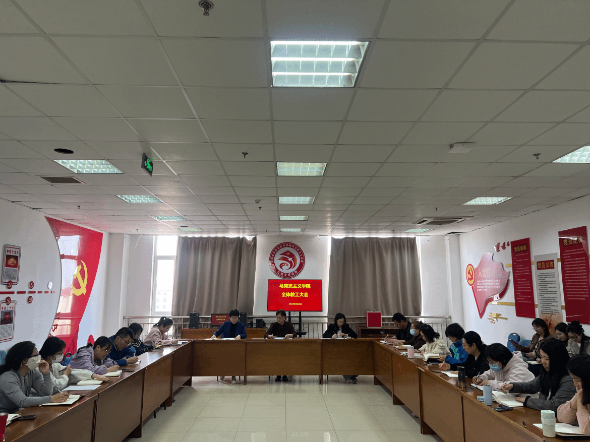 3月25日,必威BETWAY西汉姆联在A503召开全体教工大会。会议由学院院长彭翠主持,副院长张玉萍、副主任刘盼盼出席,马院全体教职工参加会议。