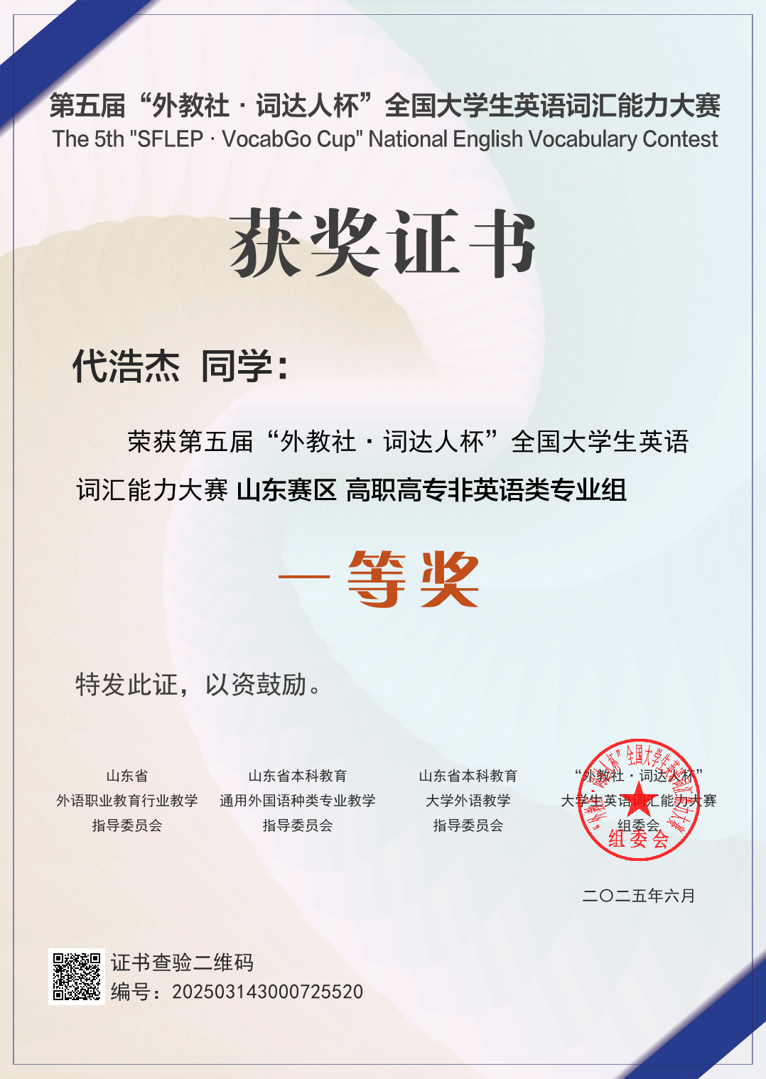 2025年3月至6月,第五届“外教社·词达人杯”全国大学生英语词汇能力大赛成功举办。本届大赛由中国外语战略研究中心、中国外语教材与教法研究中心和上海外语教育出版社联合主办,依托“词达人”英语词汇智慧学习平台在线进行。