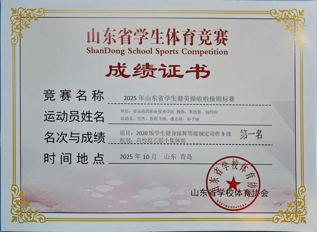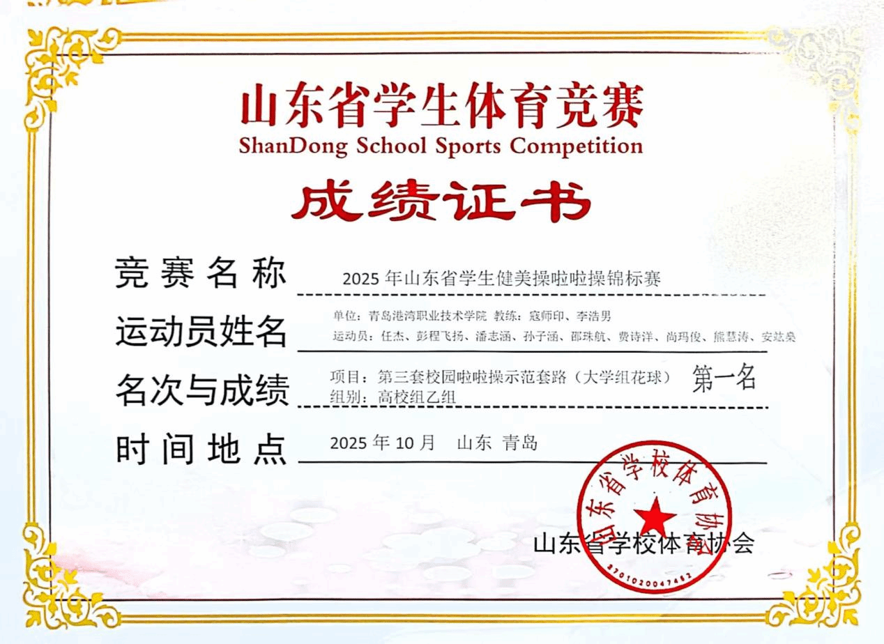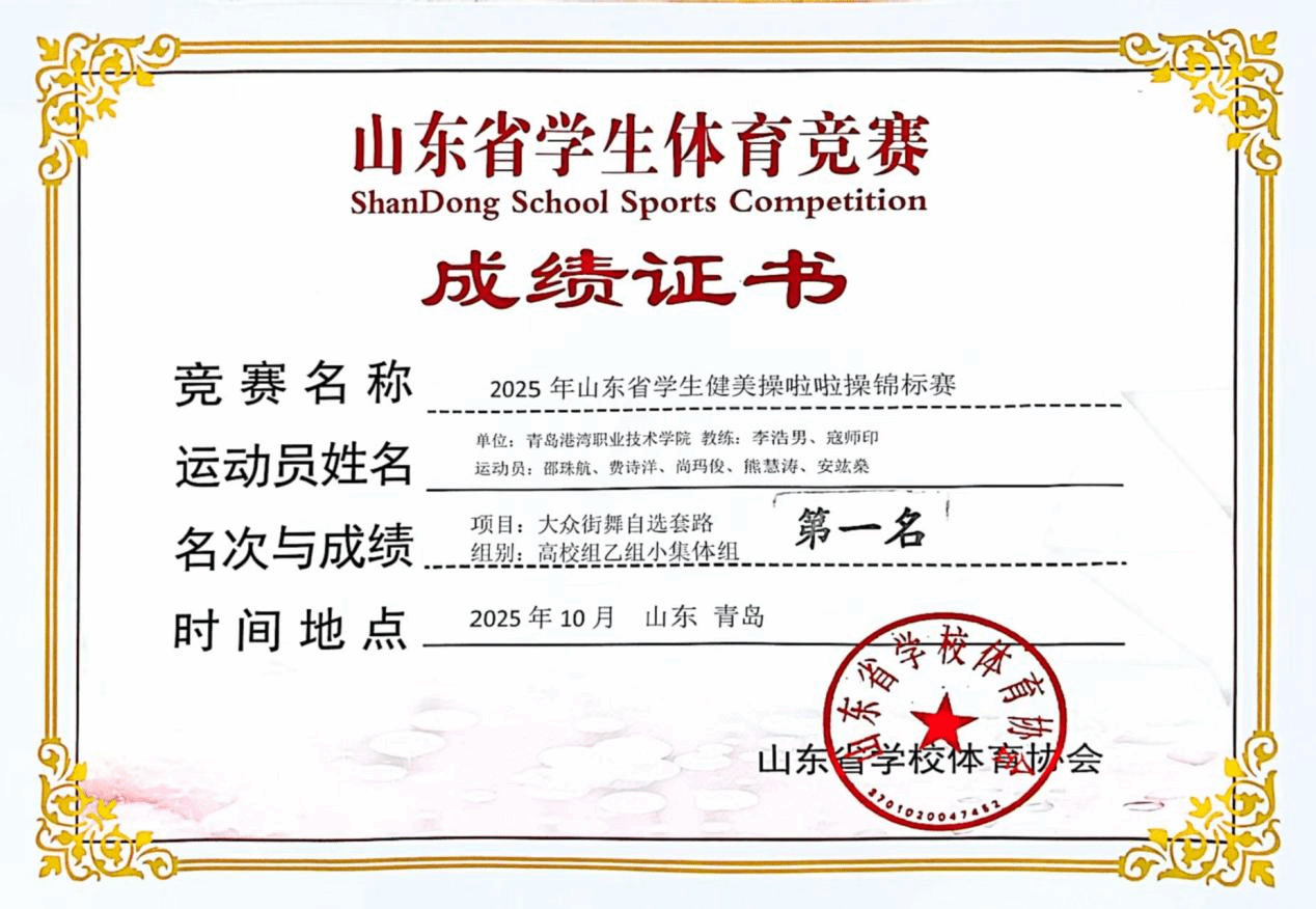 本届锦标赛由山东省学校体育协会主办,青岛市健美操协会承办,是省内影响力较广的学生健美操赛事之一。赛事吸引了全省众多高校参与,竞争激烈,学院派出队伍参加高校乙组(高职高专院校组)的角逐,与省内兄弟院校同台竞技,展现了港湾学子昂扬的斗志和精湛的技艺。