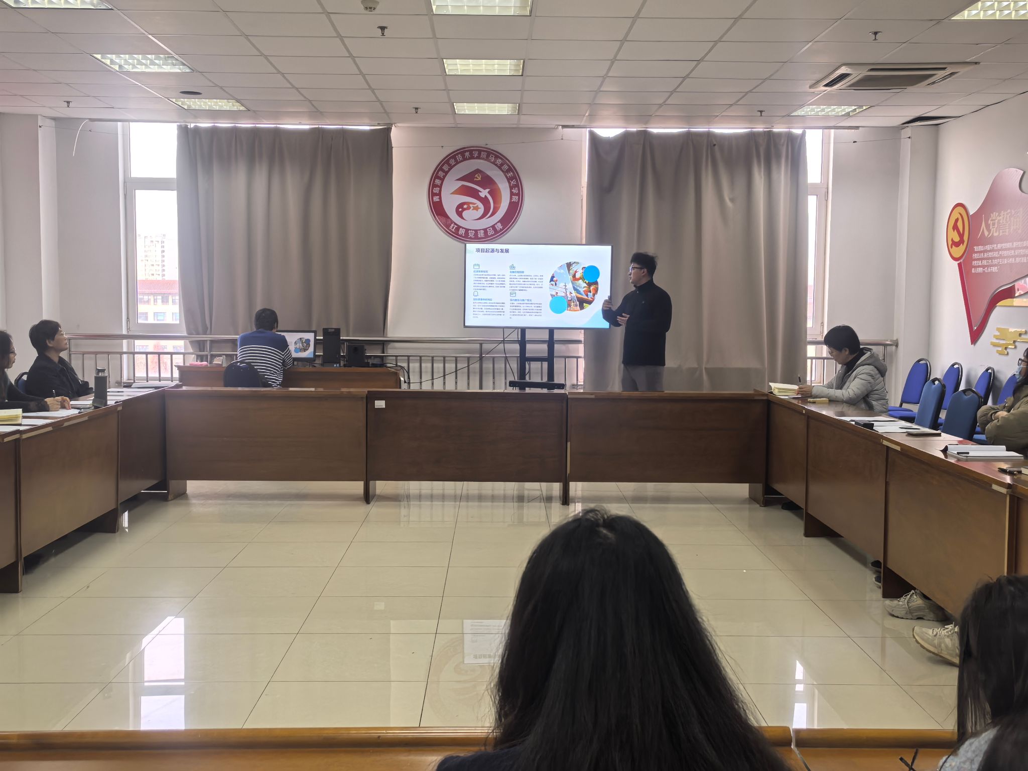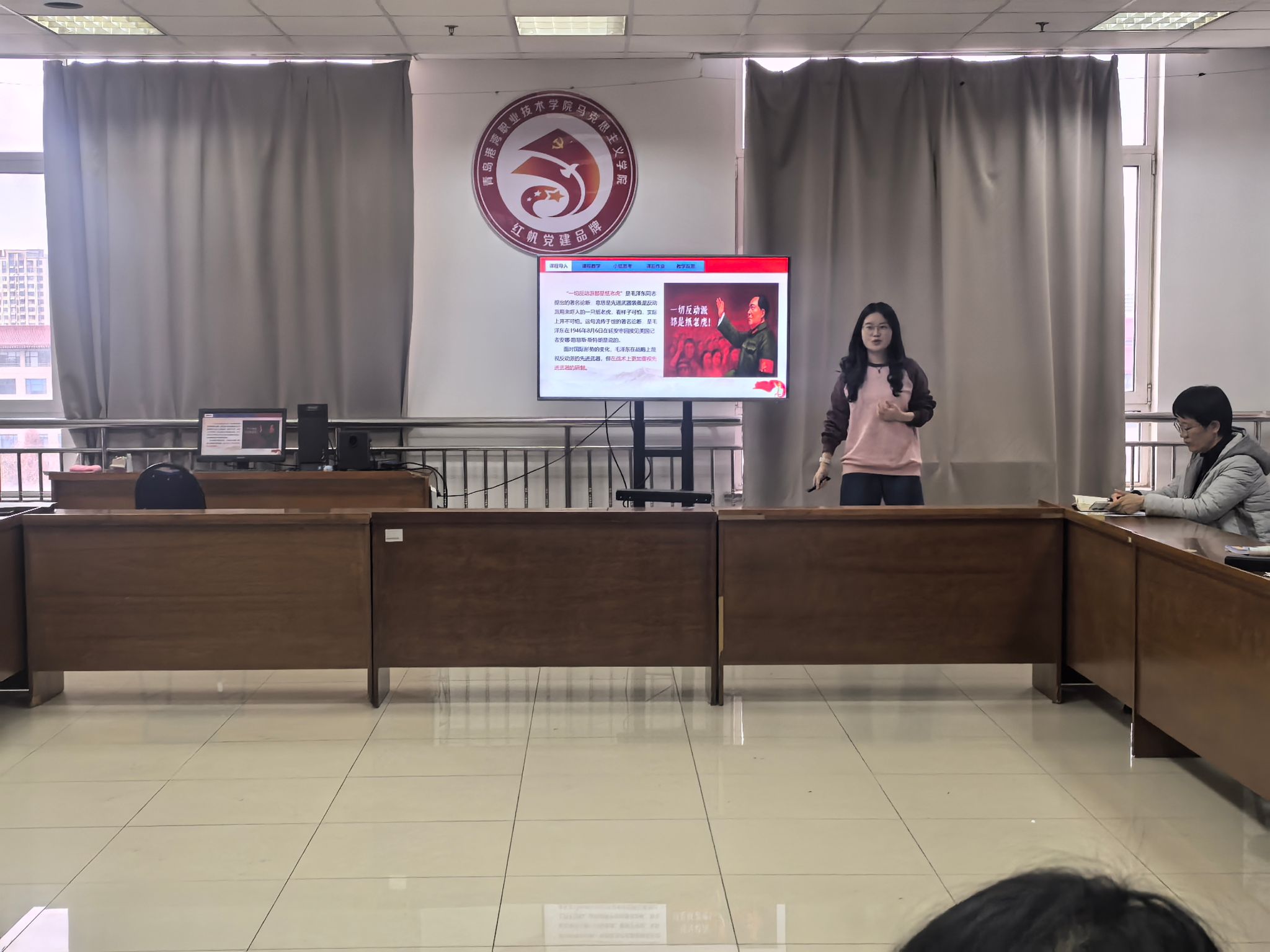 本次比赛得到青年教师积极响应,经教研室选拔推荐,7名教师入围决赛。决赛中,教师通过20分钟教学展示与教学反思,立足课程目标,融入先进理念,完成教学内容的系统性重构与教学环节的创新性设计,推动理论阐释深度、价值引导效度与教学实践鲜活度的有机统一,展现出扎实的理论功底与良好的教学风貌。